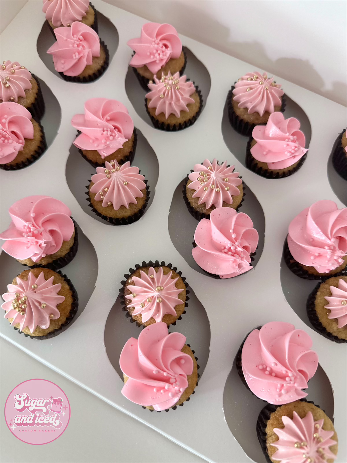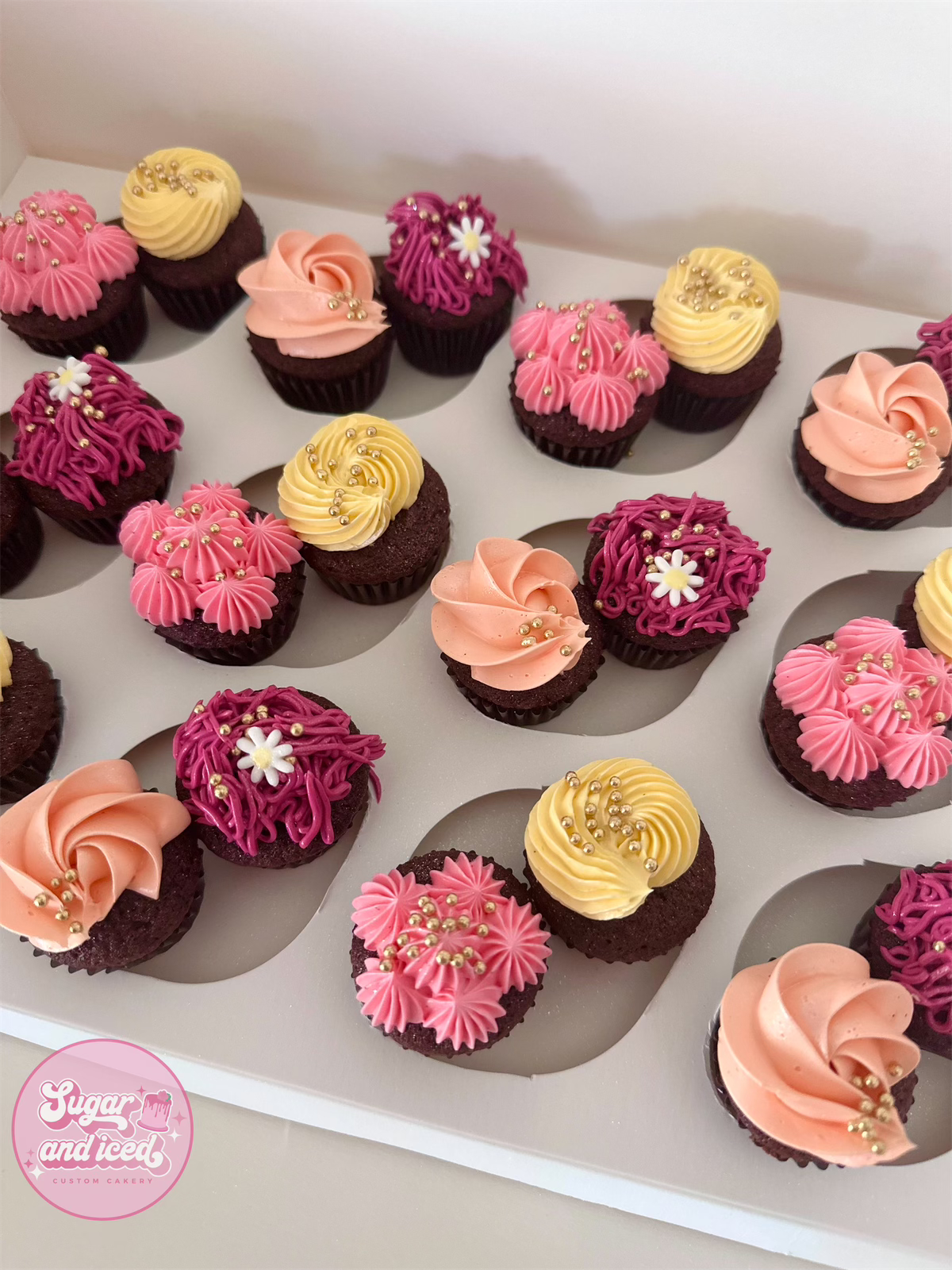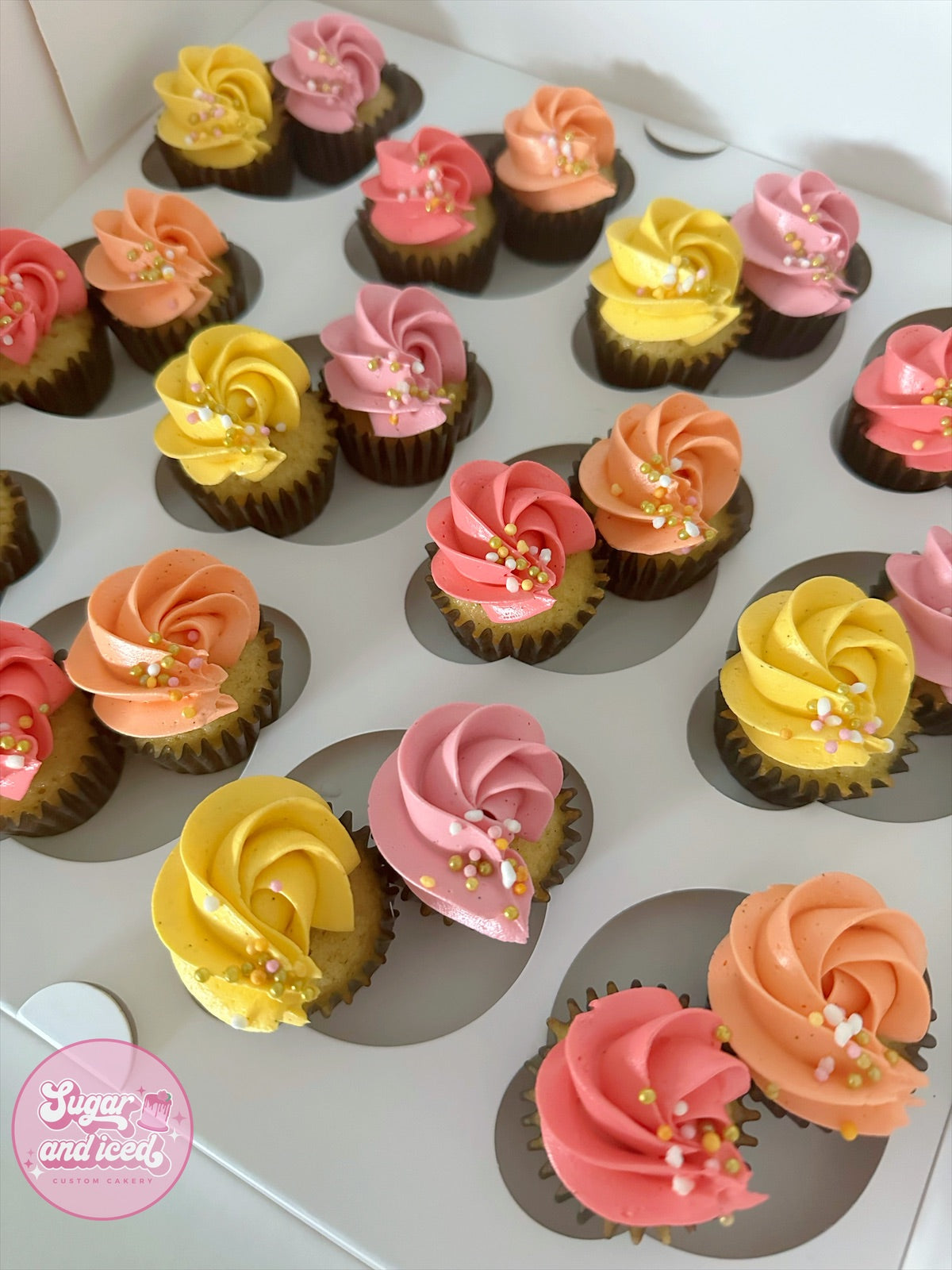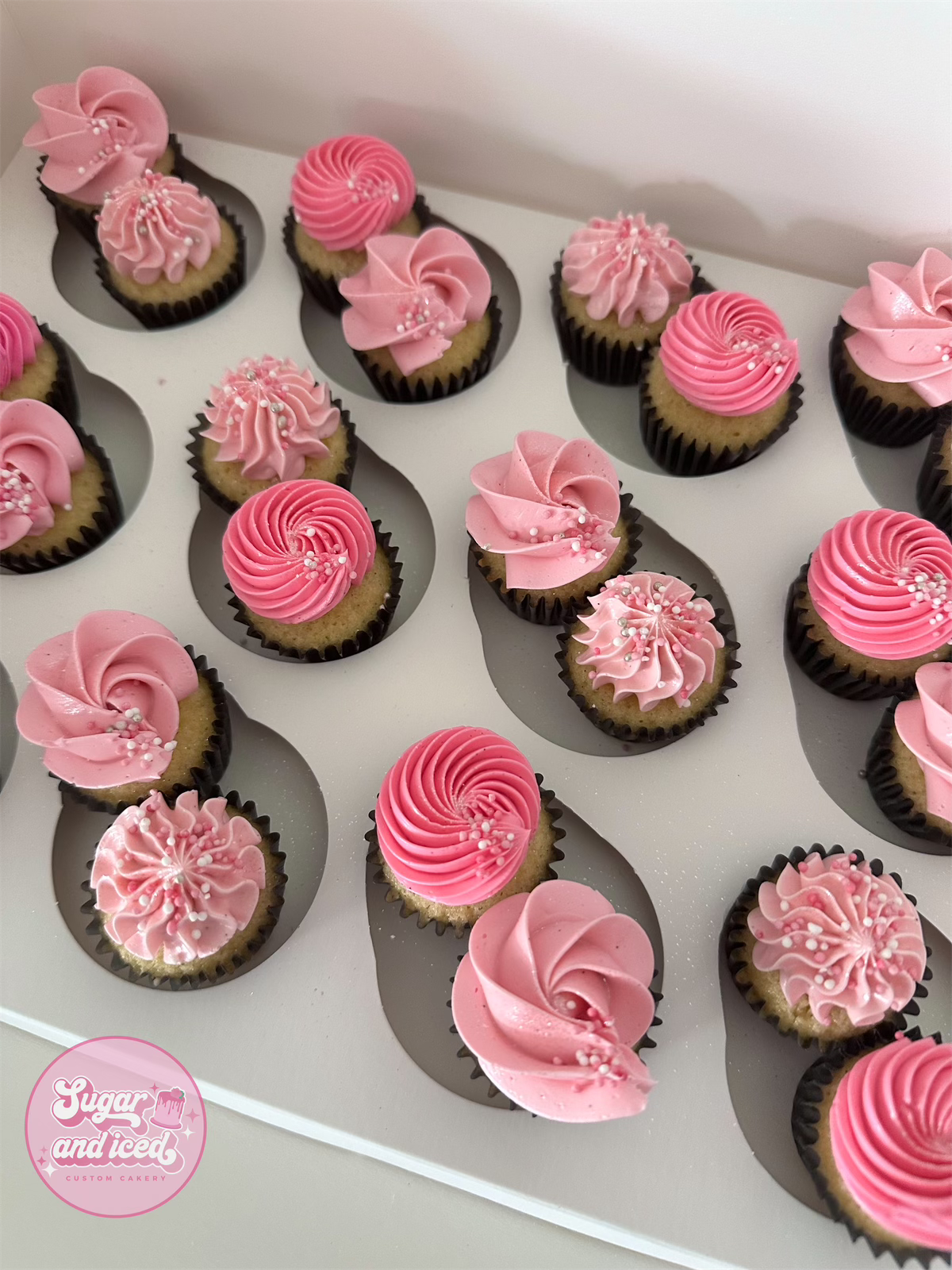 Choose from a range of flavours, let us know your theme and/or colour scheme and let us design you a beautiful box of mini cupcakes